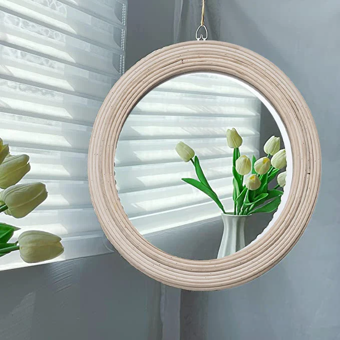 Miroir Rotin 30 cm élégant et compact, idéal pour illuminer votre intérieur et ajouter une touche naturelle à votre décoration.